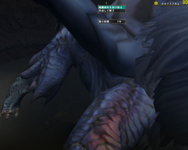 斬月:「全部位破壊失敗」 * ローゼンクラフト2本と双剣ででかけたためドドブランゴの部位破壊がどれも終わっていなかった。