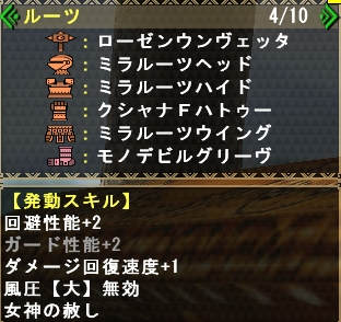 スキルそのものがどういう効果を持っているか体験がないと「これははずせない」というのがわからないものね。にしてもクシャF着ていて回避性能+1の恩恵を実感できないわたしのPSっていったい。。。どうかんがえてもそっちのほうが急務な予感。