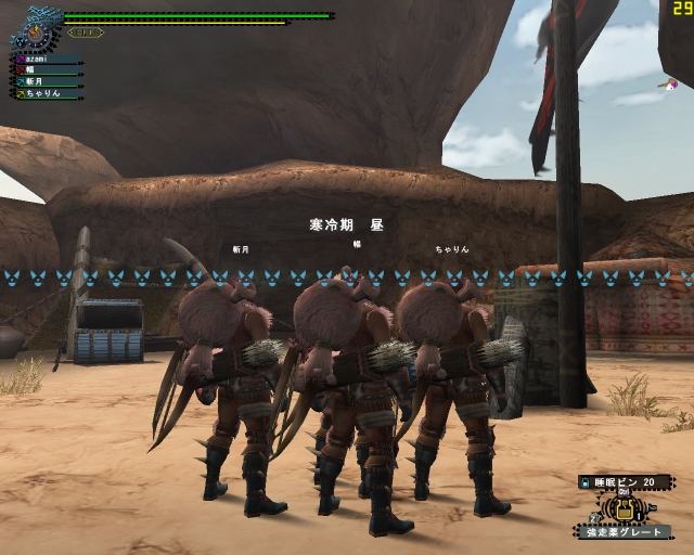 猟団長の変更にともなってわたしが副団長になってしまった。(名簿の並び順) 猟団ランクは5でぴたっと止まったままw 毎日ログインして騒いでいるのは新しいほうから数えた3人ですけど、もし入団したい人がいたらどうぞ。