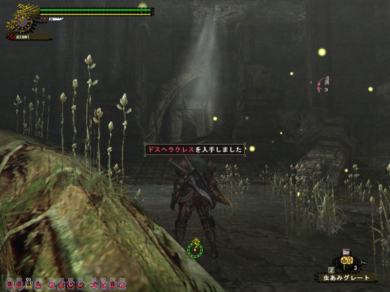 *森丘に採取にいって9番エリアでファンゴを殴ったところ通路にハマッてエリアに閉じ込められたらしい。レウスに焦がしてもらうこともできず、モドリ玉も不携帯で団チャにはいったひとこと。「でられねぇ~」「50分間生き延びろw」