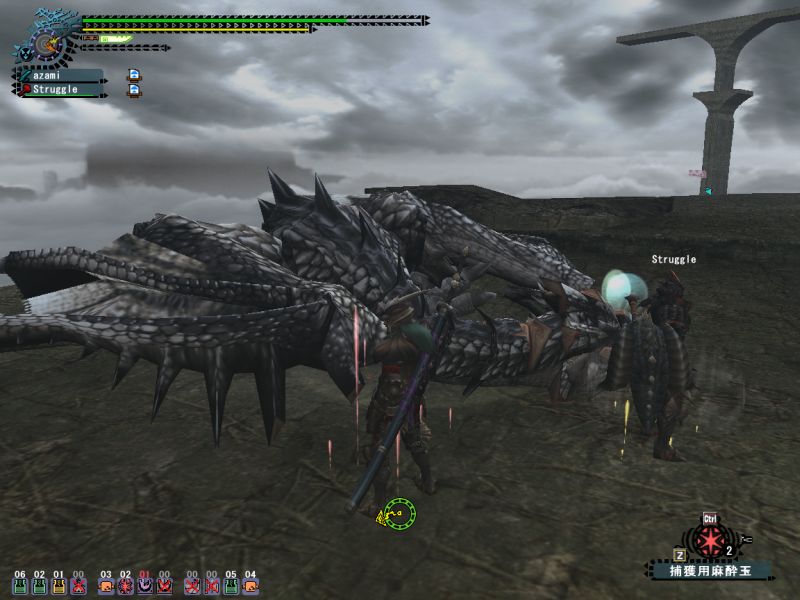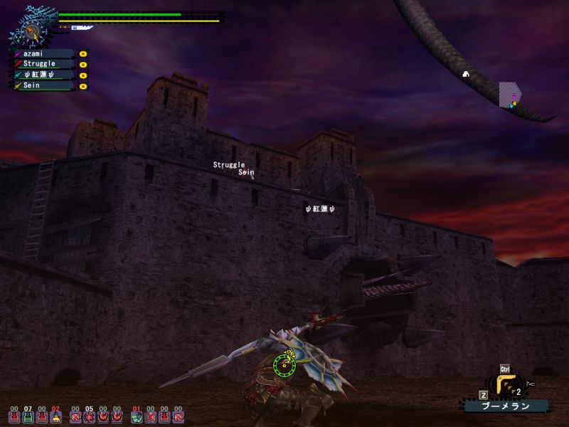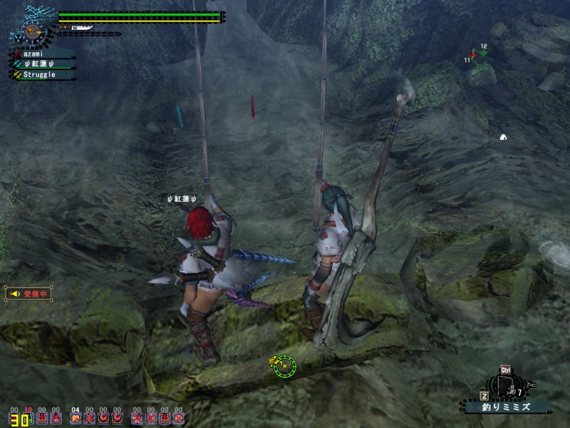 その時のSSをSeinさんが公式掲示板にUPしてくれたので、ここに転載します。このSSはちょっと不思議だ、ミラはもう倒れているのにニックの右の黄色い目玉が消えていない。Seinさんいわくは「下の階にドスランポスがいる」わたしは幻のドスギアノスが居るんだと思うw レウスとかレイアが通りかかったとか。ヤマツが浮いてるとかww