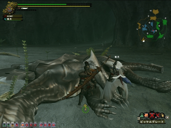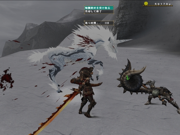 血笛で行ってサポート。玉さんの装備はギザミ一式、もう1人の方はエンプレス、斬月はルーツ+クシャだったので、アカムに体力を削られるのは玉さんだけ(双剣)になっていた。HR71~受注ってこういうことなのかなぁ。