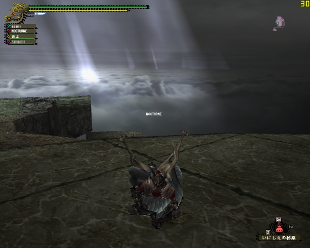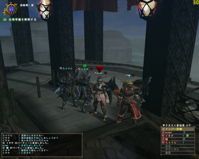 そのうちNOCTURNEさんが「錫杖槍【日光】」を背負っているのに気がつく。あいかわらず新しい武器には敏感な人だなぁ。これにはメルクリメモが5枚も要るはず。新武器の強化の話からヤマツカミへ行くという事になって参加させてもらう。