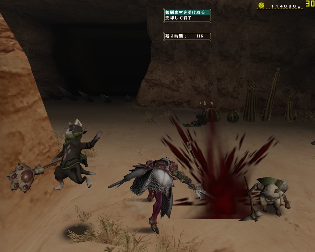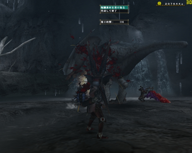 みんなわたしの欲しいものを良く知ってる。さっそくでかけて3人ともブランゴ装備にハンマーというお決まりで。早々にドスガレオスのひれで暢さんと二人ハデに吹っ飛ばされるww