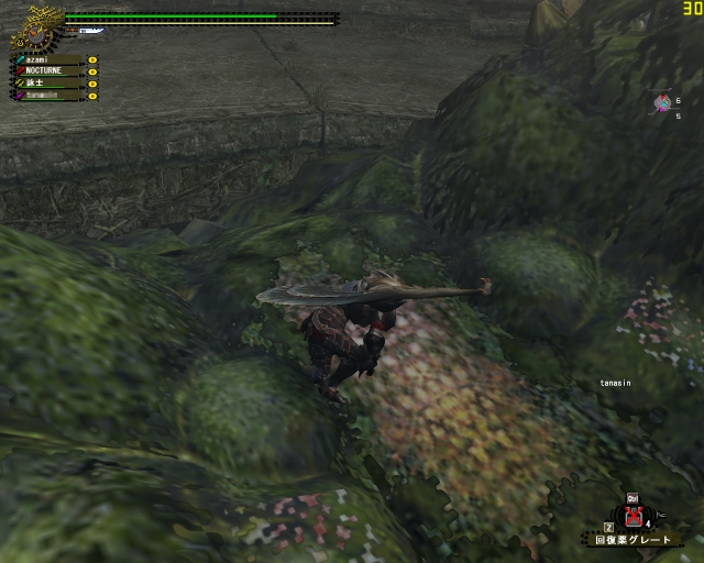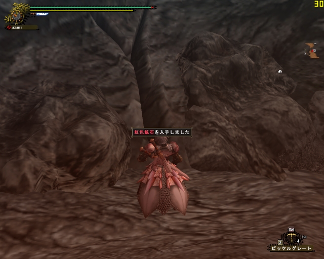 行くたびに作る強走Gだけ増えていく。紅蓮石はもう130個をこえた。戻ってどこかで銀レウスを狩っていた斬月からスカイプで「あざみなにやってんの?」「まだ虹色掘ってる・・・」「おれも行く」