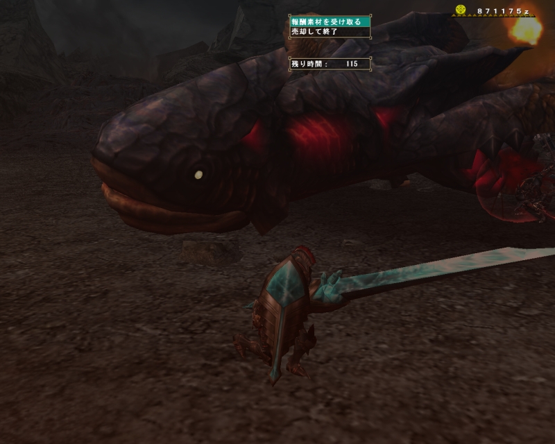 報酬が激しくしょぼかったけど(メモはデフォで出ません)ヒレは剥ぎとってエビも「巨大殻」だった。