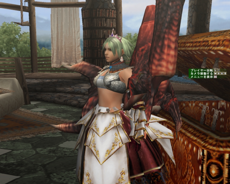 着ている防具はLv.5でストップした(古竜のコインが無い)シエルの腕と腰と脚。キリンベスト。女性版ピンクバケツのハイメタUキャップ。