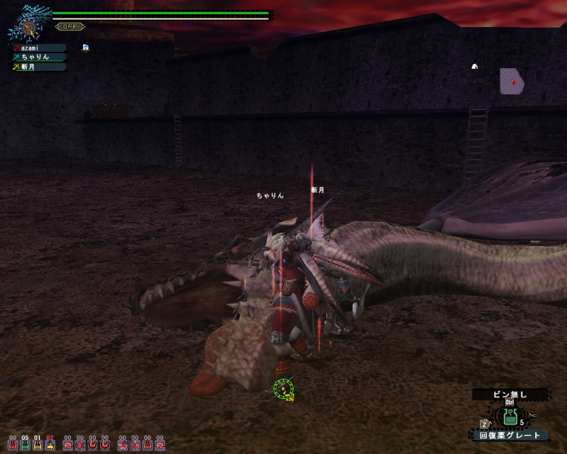 斬月とフレのRさんがやってきたので4人で死神へ。斬月の火事場弓@耳栓なし というおもしろいものを見せてもらうww