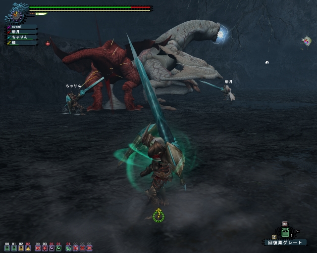 片手剣のように攻撃しながら少しづつ移動のある武器を持ったPTメンバーが近くにいたら要注意だな。