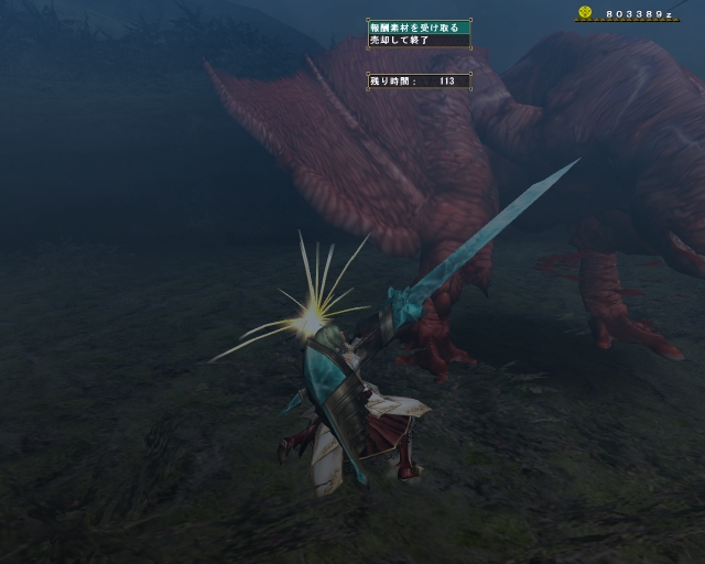 なんだかわけわかんないなー、くれくれ言われていた「ゲネポスの鱗」をやっと渡す事ができたけれどあのコは何に使うんだろう?なんでもあげるよ「ギアノスの上鱗」だって「イーオスの上皮」だってw