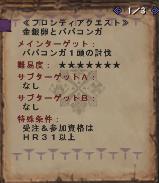 1度行って「めんどくせぇ」クエには二の足を踏むww 出なかったけど「いいやぁ、めんどくせーし・・・」と素材関係無しに、プレイして楽しいクエのほうに行っちゃうのである。大嫌いなのはババコンガwwww