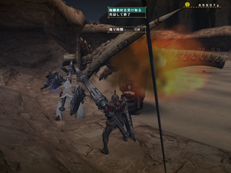 これをラストに眠るはずが街に帰ってからえんえんガンナー装備の話になってわたしがいかにスキルに対して無知かが露見。二人に相談にのってもらって「弓用」のガンナー装備を考える。フルフルUも最後の強化を残しているし、明日からは赤フルと強化費用捻出で逆バサだーーーーー。