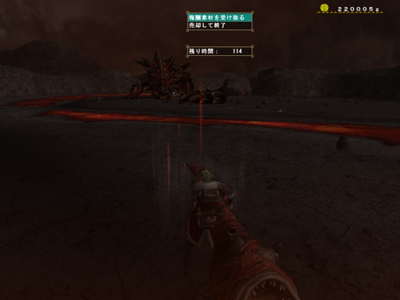 奥の溶岩だまりでとどめを刺してしまって剥ぎ取りできなかった。。。虹色が一個出た♪