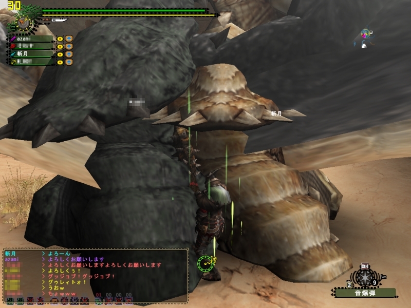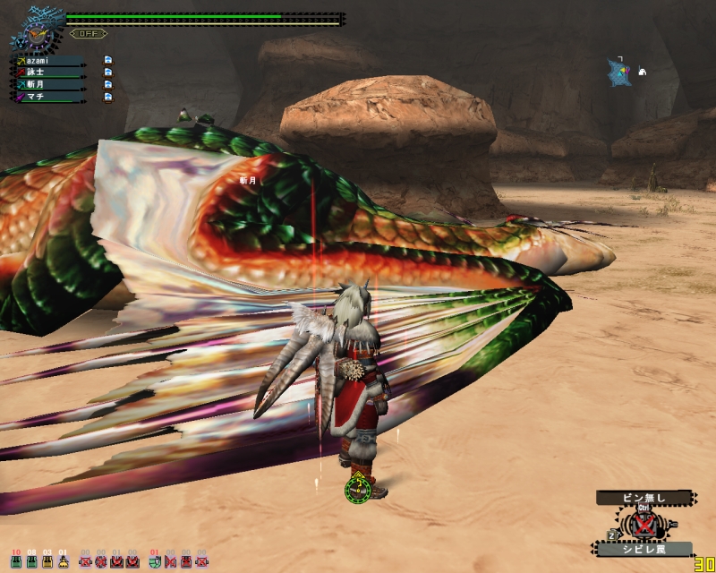 ランスの斬月はこけまくり、Sさんの片手剣でわたしもひるむ。