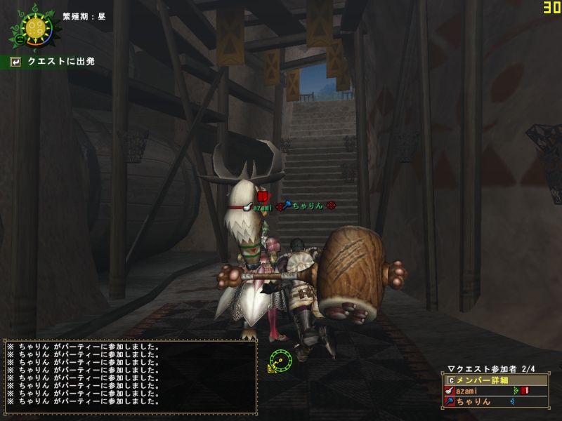 団部屋に行っておこうとメゼポルタの端まで行ったら、レプリケージのマチ団長とばったりw 食事中とのこと。わたしは団部屋によってまた街にもどる。