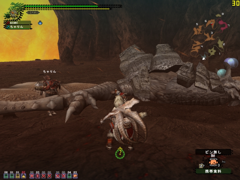 斬月:「どーんだけ丸呑みしてんだよ、こいつ!」 * ゲリョに「調合書」1.2.3つぎつぎ盗まれて悲鳴。